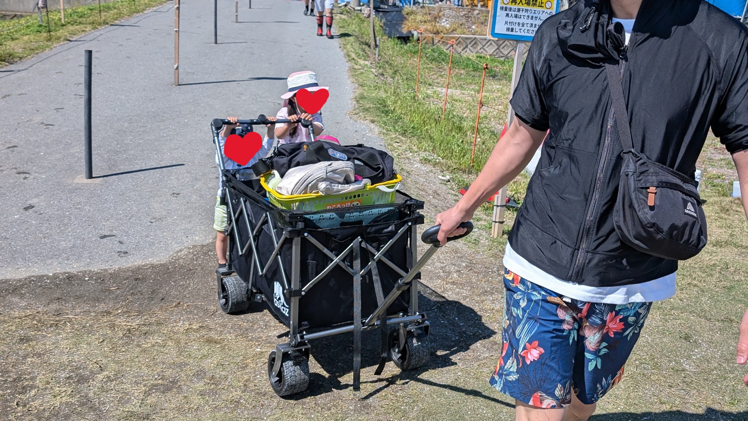 帰りは、収穫したアサリや海水の持ち帰りでさらに荷物が増えるので、キャリーワゴンがあるとかなり楽だと感じました。